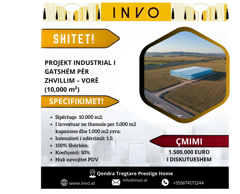- Destinacioni: 100% Shërbim, kapanone dhe industri e lehtë.